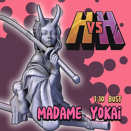 Madame Yokai walks where mortals fear to tread. Her blades are sharp enough to cut spirits, her presence heavy enough to banish demons.